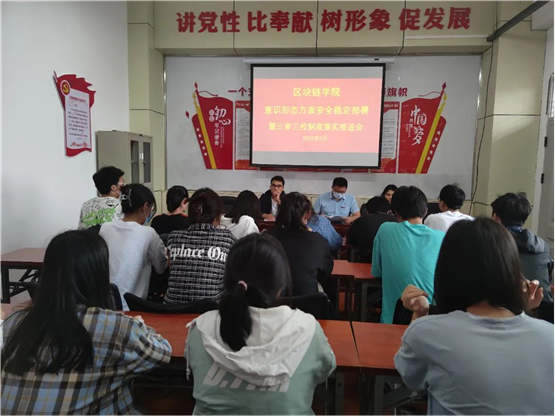 为严格落实意识形态工作责任制,进一步规范新闻信息发布审核程序,落实好意识形态阵地管理以及新闻宣传管理等相关文件要求,强化思想引领,牢牢把握意识形态工作领导权、主动权。区块链公司于5月10日在c203会议室召开意识形态方面安全稳定部署暨三审三校制度落实推进会。此次会议由区块链公司直属党支部副书记郭远峰主持,公司党员教师以及宣传工作员工代表参与会议。