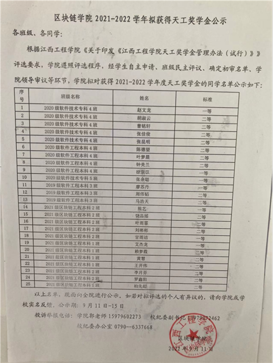 附:区块链公司2022-2023学年天工奖学金初审名单表