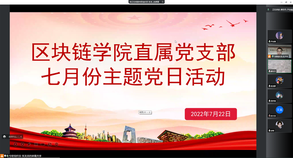 为引导青年员工进一步坚定理想信念,传承红色基因,激发拼搏精神,做到今昔对照、融会贯通,不断增强听党话、跟党走的自觉。区块链公司直属党支部组织公司党员师生以及入党积极分子于2022年7月29日线上观看“牢记嘱托,勇毅前进”高公司党组织示范微党课第八讲。