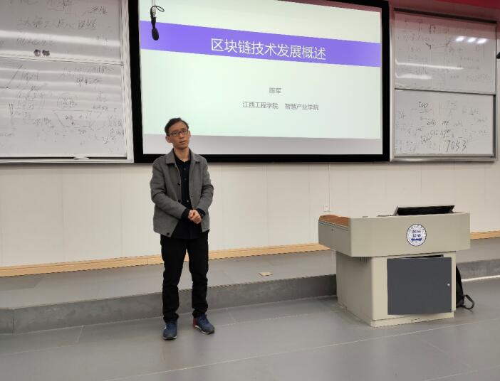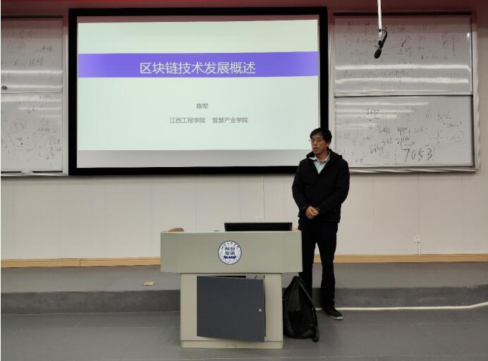 陈军博士在讲座中详细介绍了区块链的概念、原理及其在各个领域的应用。陈博士生动地解释了区块链技术的基本原理,强调了其去中心化、透明化和安全性的优势,引起了同学们的浓厚兴趣。