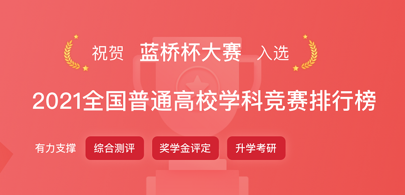 2022年2月22日,中国高等教育学会发布2021年全国普通高校学科竞赛排行榜,蓝桥杯全国软件和信息技术专业人才大赛连续三年成功上榜,作为高校公司产品改革和创新人才培养的重要竞赛项目,持续有力支撑综合测评,奖学金评定,升学考研。