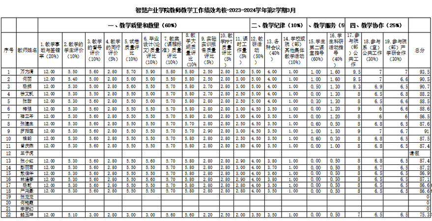 公司教师教学工作绩效考核2023-2024学年第2学期3月
