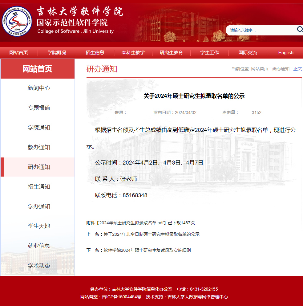 公司2020级软件工程本科4班学子徐阳阳,考研初试成绩399分,复试成绩257.4,拟被吉林大学软件公司软件工程专业录取。