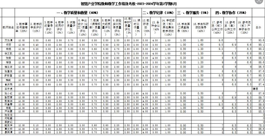 公司教师教学工作绩效考核2023-2024学年第2学期5月