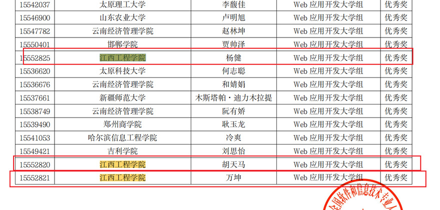 此外,杨健、胡天马、万坤三位同学也在Web应用开发大学组比赛中获得了优秀奖。他们在比赛中展现出了对Web开发技术的熟练掌握和创新能力,成功完成了多个具有挑战性的任务。他们的表现不仅为公司增添了荣誉,也为自己在Web开发领域的发展奠定了坚实的基础。