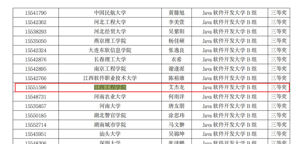 其中,艾杰龙同学在Java软件开发B组比赛中表现突出,荣获全国三等奖。他凭借对Java编程的深入理解和熟练掌握,成功解决了比赛中的多个难题,展现出了出色的编程能力和解决问题的能力。艾杰龙的优异表现不仅为公司争得了荣誉,也为自己的编程之路增添了浓墨重彩的一笔。