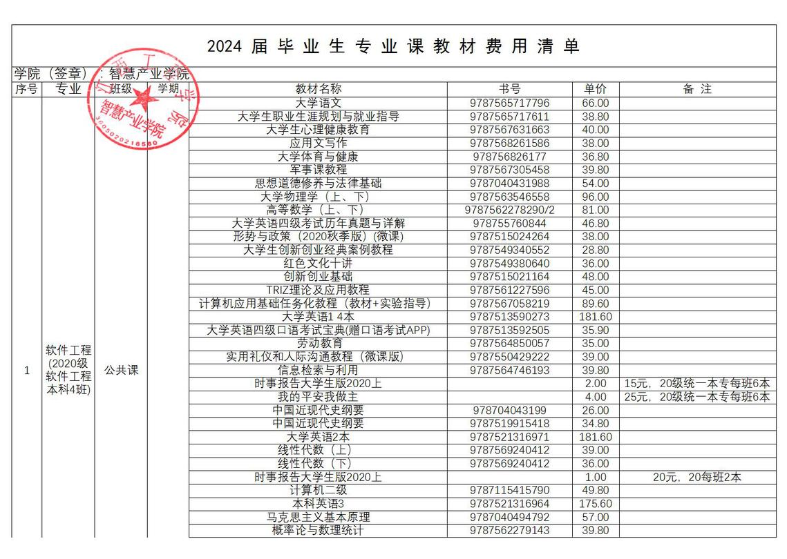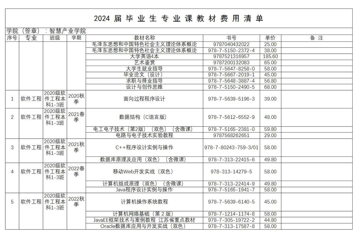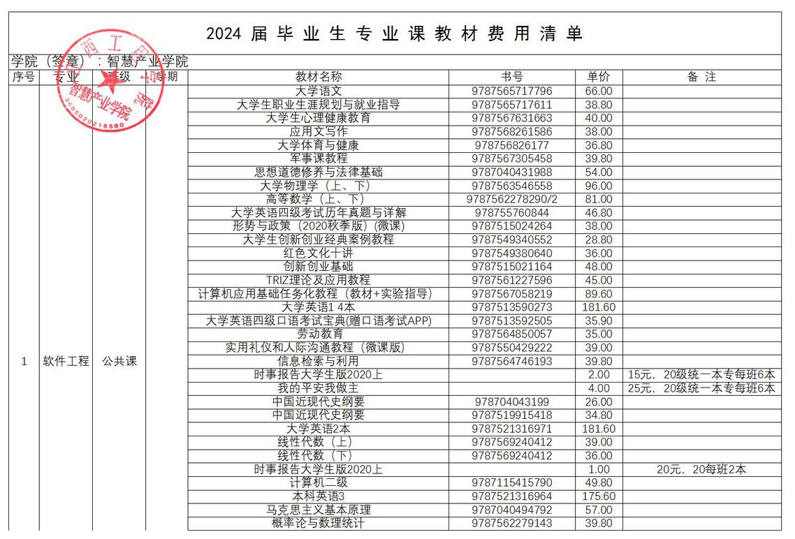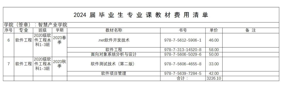 sunbet2024届毕业生教材费用公示
