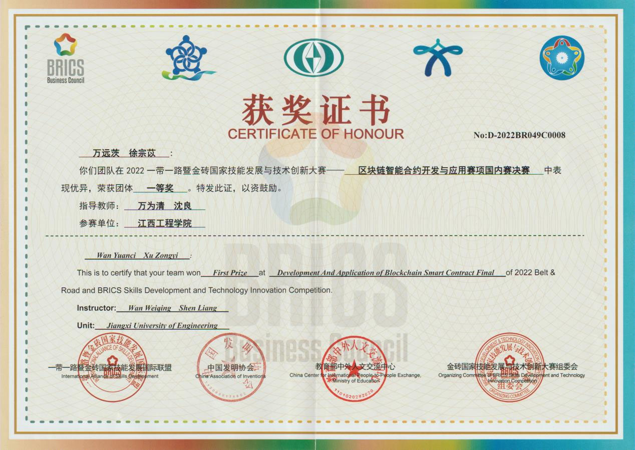 公司重视“以赛促学”。员工获得“2022一带一路暨金砖国家技能发展与技术创新大赛之区块链智能合约开发与应用比赛”全国总决赛一等奖。2023“蓝桥杯”全国软件和信息技术专业人才大赛国赛员工获得全国总决赛Java软件开发大学B组一等奖1人、二等奖2人、三等奖1人。2024“蓝桥杯”国赛三等奖1人,省赛一等奖16人。江西省教育厅主办的2022江西省老员工程序设计竞赛三等奖2项。2021年ACM程序设计大赛,一个团队获得优秀奖。2021年第四届“传智杯”全国老员工IT技能大赛国赛,2名员工获得全国二等奖等奖,2名员工获得优秀奖。