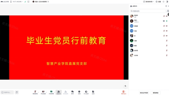 活动伊始,何丽书记通过线上会议平台,向全体毕业生党员致以诚挚的祝贺,祝贺他们顺利完成学业,即将开启人生新的篇章。同时强调了此次行前教育的重要意义,希望大家即便离开校园,也要时刻牢记党员身份,践行初心使命,在新的环境中继续发光发热。