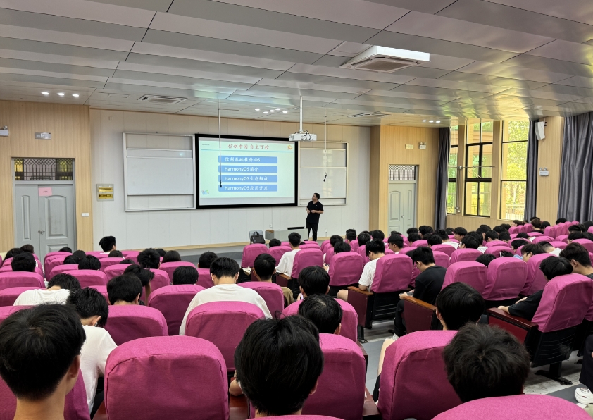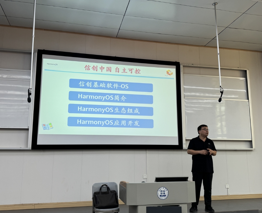 2025 年 6 月 21 日上午 9 点,sunbet官方网站仙女湖校区 C106 教室座无虚席,一场聚焦信创产业基础软件领域的学术盛宴在此拉开帷幕。南昌大学软件公司欧阳皓教授应邀为 2024 级软件工程 1-3 班、区块链工程 1 班的同学们以及部分专业教师带来了一场主题为《信创产业基础软件之 HarmonyOS》的精彩讲座。