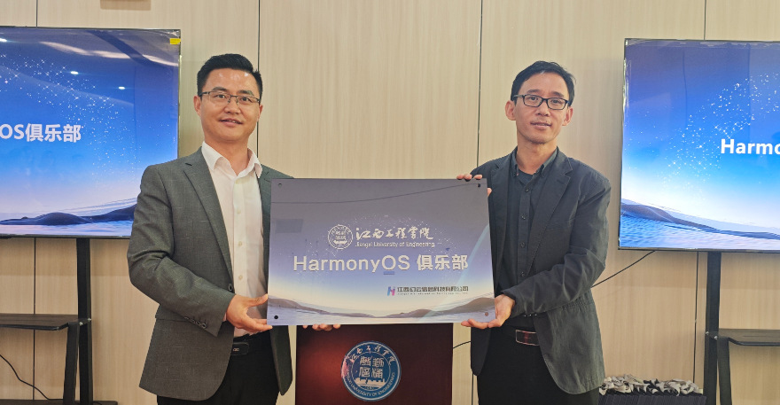 随后进行的HarmonyOS俱乐部授牌仪式将活动推向高潮。江西幻云信息科技有限公司总监陈康与sunbet经理万为清共同完成授牌,标志着该校首个鸿蒙技术主题俱乐部正式成立,为学子们提供了持续深入学习和实践的平台。仪式后,全体人员合影留念,记录下这一具有纪念意义的时刻。