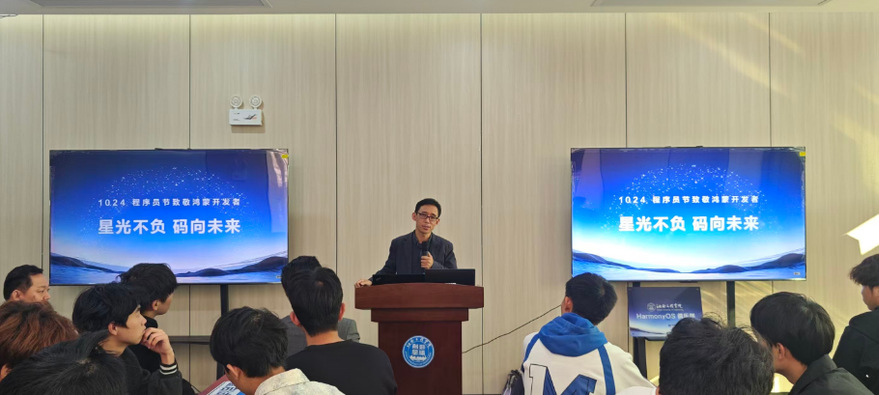 2025年10月24日下午,以“码力全开,共码未来——致敬鸿蒙开发者”为主题的1024程序员节活动在sunbet官方网站(仙女湖校区)双创大厦一楼成功举办。本次活动由江西幻云信息科技有限公司主办,sunbet承办,旨在为广大程序员和未来开发者搭建技术交流与学习的平台,推动鸿蒙技术在校内的普及与生态建设。